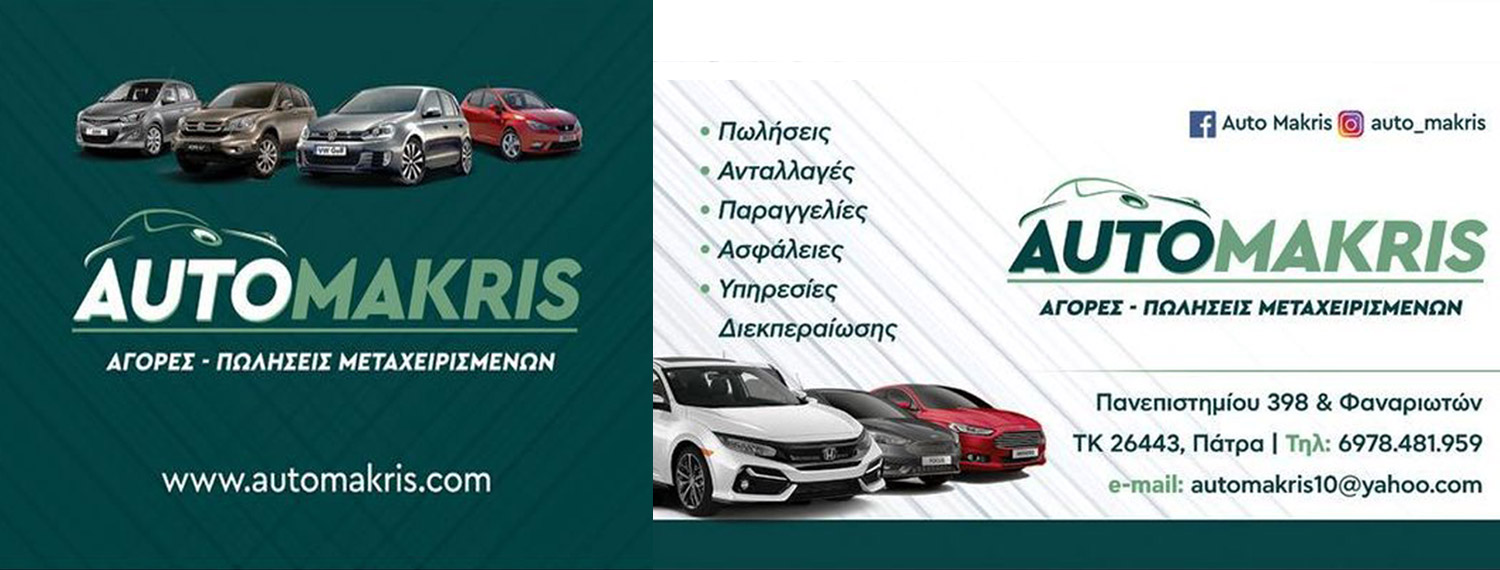Πανεπιστημίου 398 Τηλ. 2616008397, Fax: Email: automakris10@yahoo.gr https://auto-makris.car.gr/cars/