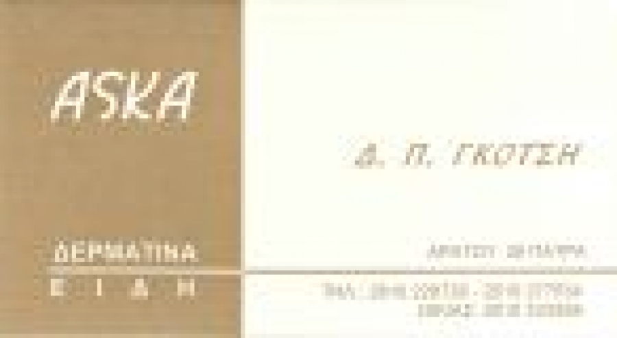 Το κατάστημα ASKA ασχολείται με το δερμάτινο και το γούνινο ένδυμα από το 1985. Θα το βρείτε στο ίδιο σημείο στην Αράτου 28 με πολλά νέα σχέδια και χρώματα, και με ανθρώπους που είναι ειδικοί επάνω στο δερμάτινο και το γούνινο ένδυμα και θα σας εξυπηρετήσουν με καλοσύνη και φιλική διάθεση. Στο κατάστημα μας επίσης θα βρείτε τον τρόπο πληρωμής που σας εξυπηρετεί.
