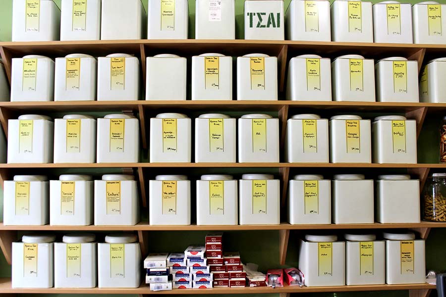 μυρωδικά ελληνικά αλλά και από όλο τον κόσμο, ποικιλίες από τσάι παραδοσιακές ή με φυσικές γεύσεις καθώς και αιθέρια έλαια.